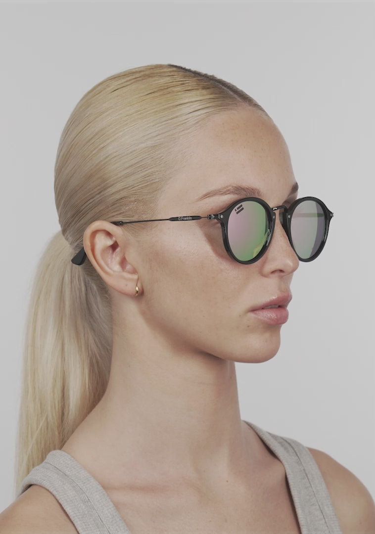 Le lenti arrotondate e specchiate color rosa e la montatura tartarugata rafforzano l'estetica anni Settanta di questo modello. Presenta i nostri dettagli D.Franklin: il logo inciso su entrambe le aste in metallo e il nostro emblema sulla lente destra. Con una lente di 49 mm e una montatura di 148 mm, questi occhiali si adattano alla maggior parte dei visi. Le aste laterali sono lunghe 145 mm.
